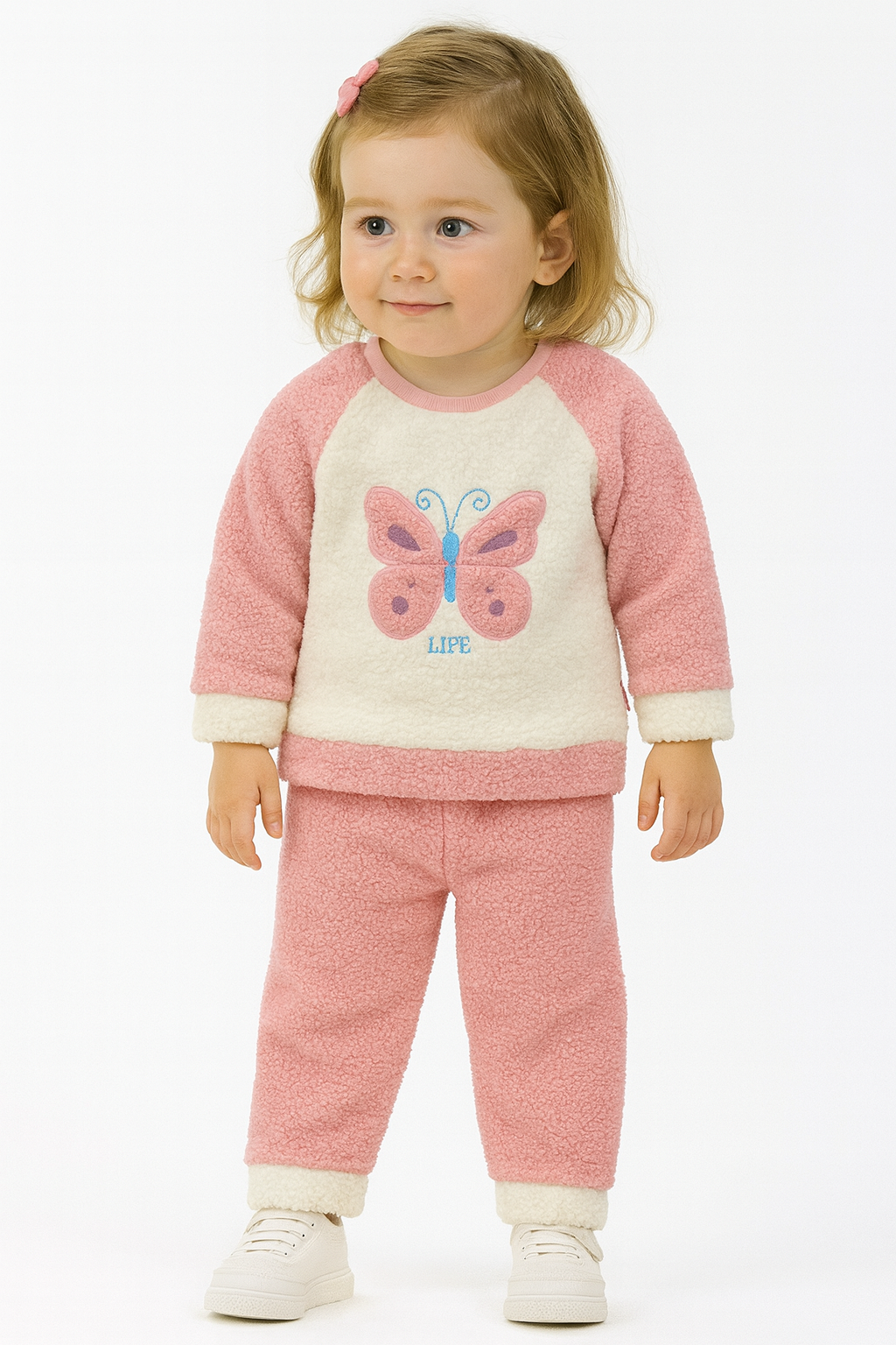 Kelebek Görselli Kışlık Peluş Welsoft Kız Bebek Çocuk 2'li Takım-Somon (BB2025MD1111-Somon-6-9 ay)