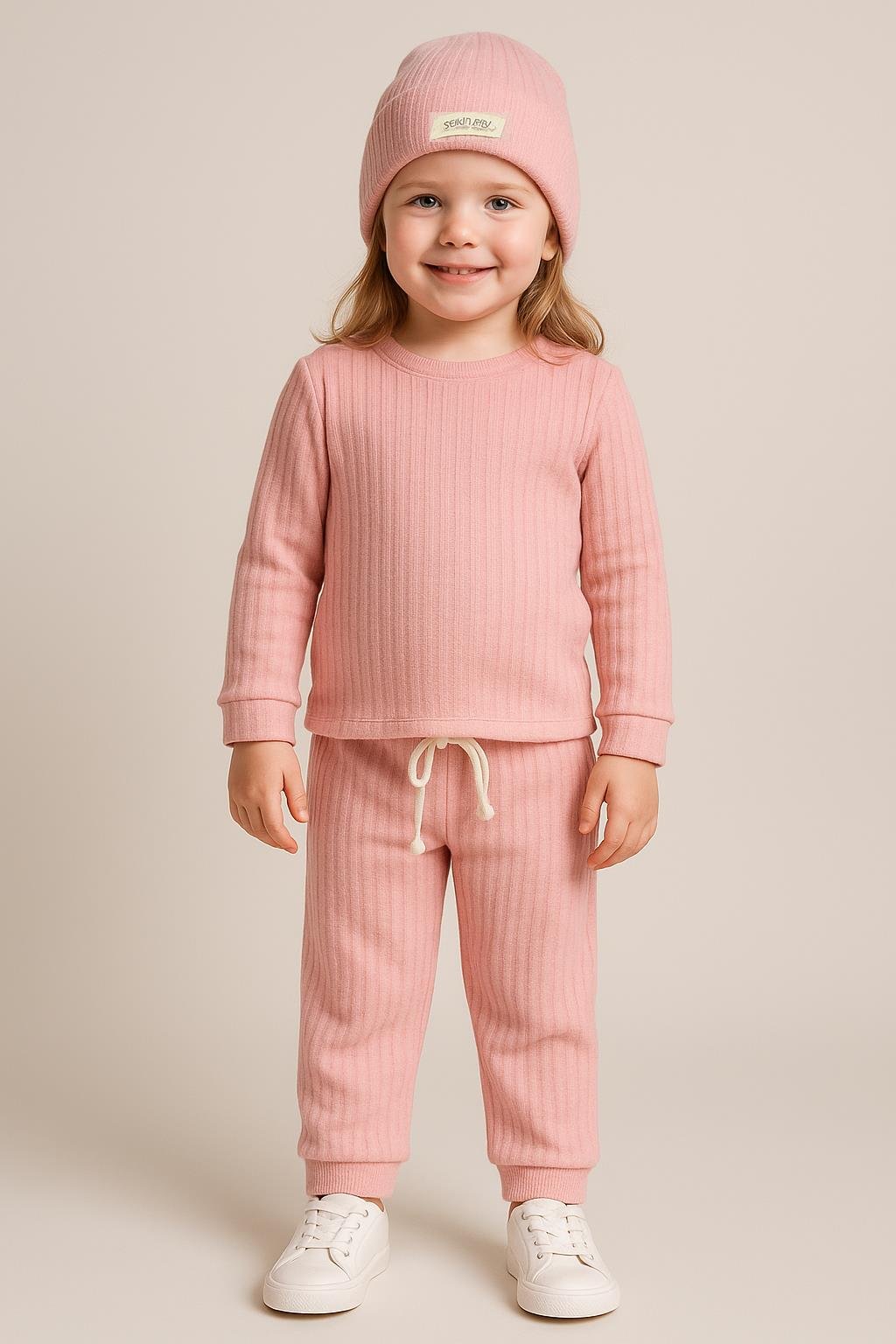 Şapkalı Bebek&Çocuk Alt Üst 3'lü Takım-Somon