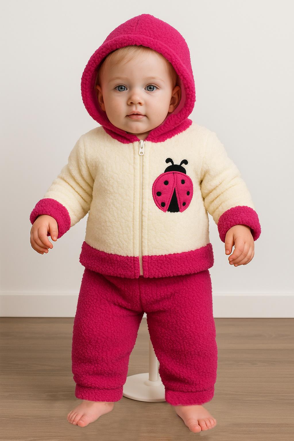 Uğur Böceği Nakışlı Kışlık Peluş Welsoft 2'li Kapüşonlu Takım-Kırmızı (BB2025MD107-Kırmızı-6-9 ay)