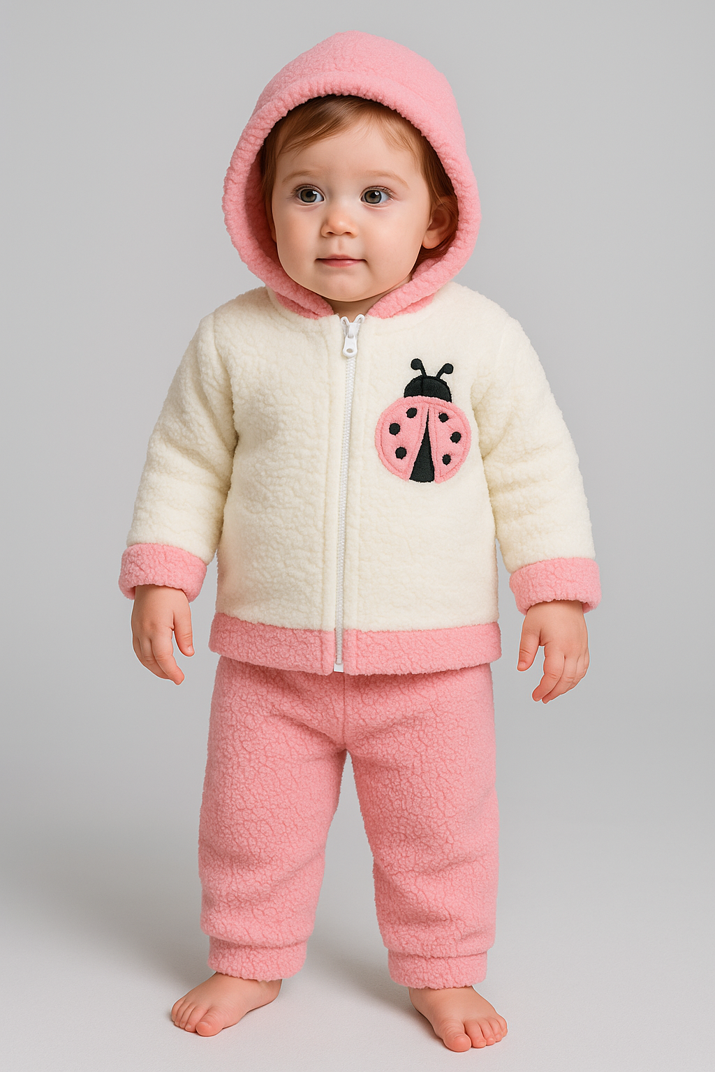 Uğur Böceği Nakışlı Kışlık Peluş Welsoft 2'li Kapüşonlu Takım-Somon (BB2025MD107-Somon-6-9 ay)